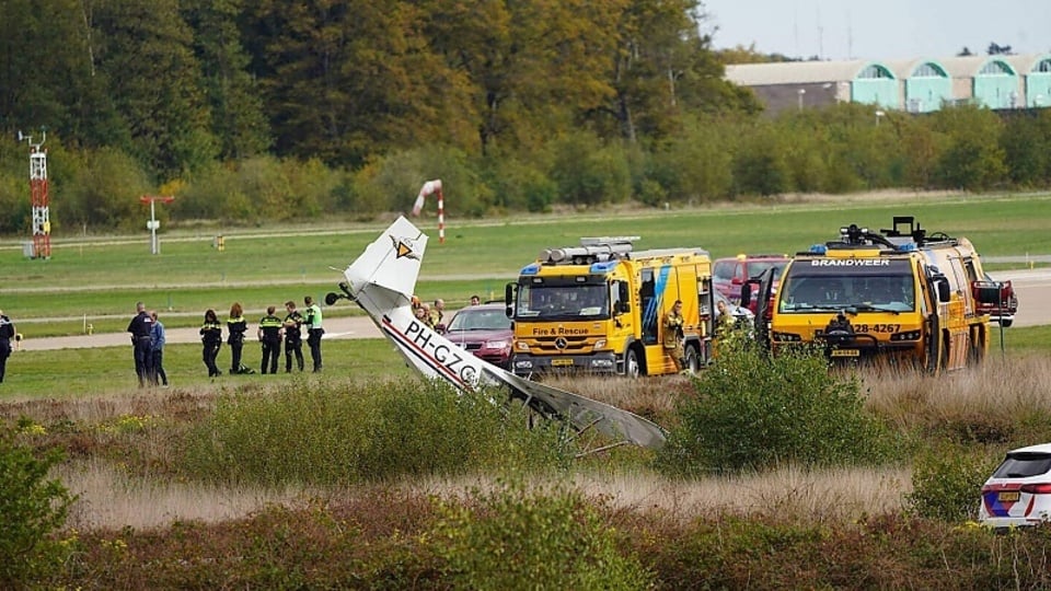 Gilze – A small civilian plane rolled over during landing at Gilze-Rijen Air Base (North Brabant). The pilot, the sole occupant, is being checked by paramedics, police reported.